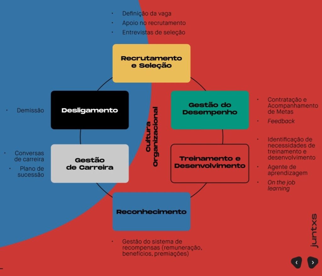 A Juntxs apresenta o Ciclo de Gestão de Pessoas em seis grandes etapas, todas conectadas à cultura organizacional e à atuação das lideranças:
